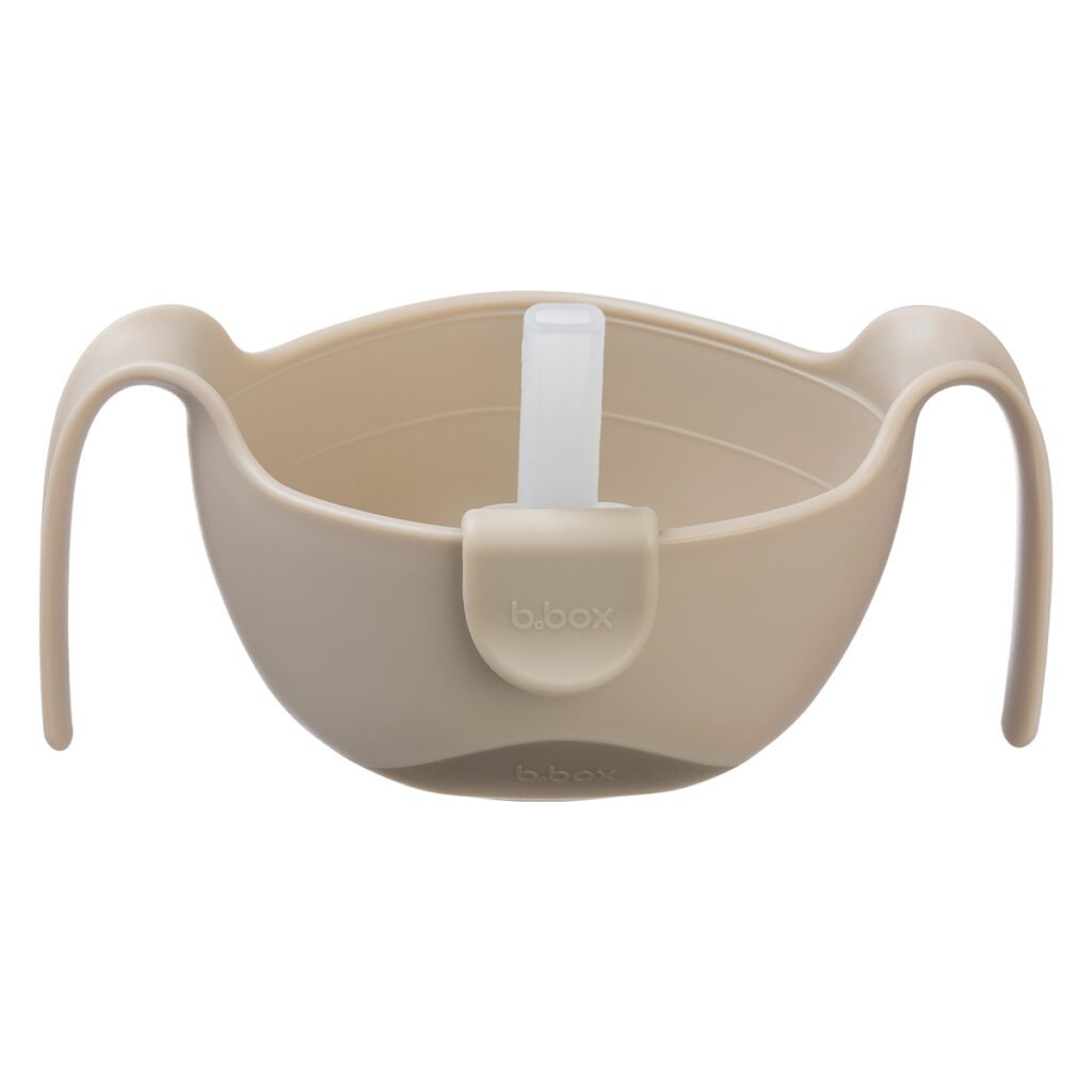 Bol profond, avec base antidérapante et système de paille amovible, insert pour collation et couvercle de rangement.
