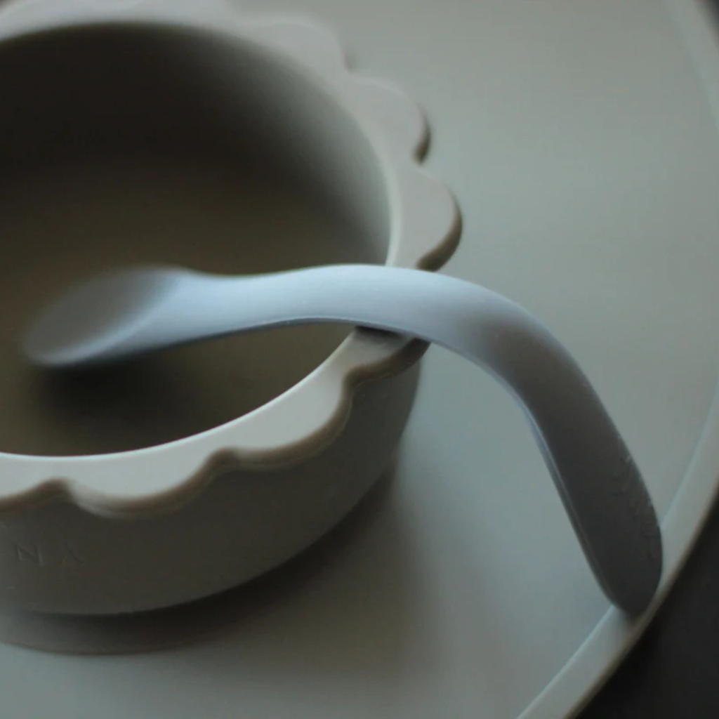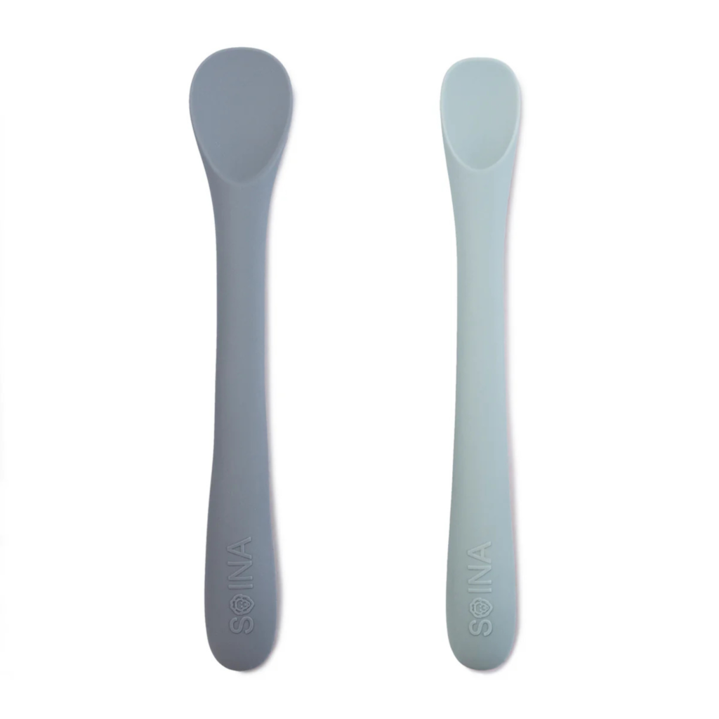 Ces cuillères ont été conçues pour faciliter les premières bouchées, avec une forme fine, plate et une texture souple adaptées à la bouche de bébé. Leur profil plat permet de déposer les aliments délicatement sur la langue, en respectant les capacités de succion et de déglutition de bébé, pour une découverte de la cuillère en douceur.