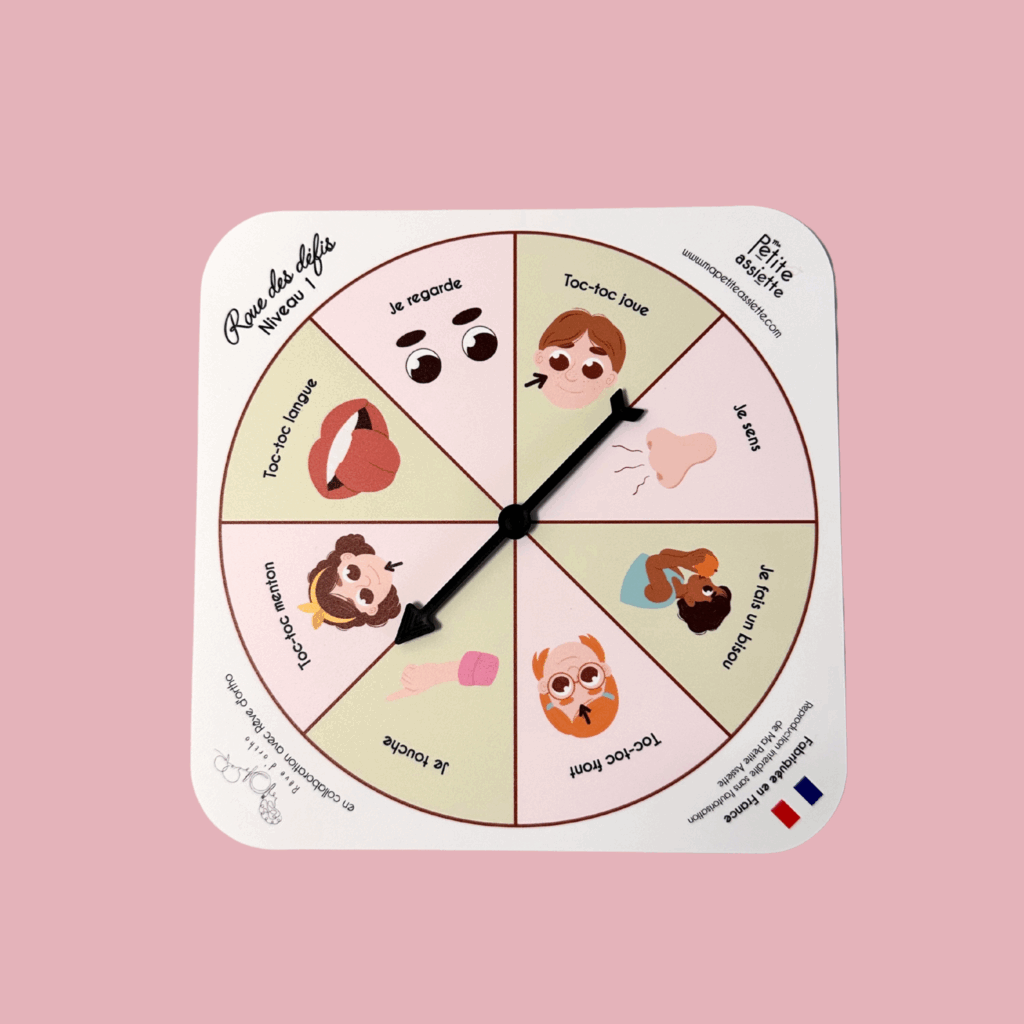 Roue des défis niveau 1 : un outil ludique et validé par des professionnels, pour aider les enfants dès 3 ans à explorer les textures, dépasser leurs réticences et retrouver le plaisir de manger.