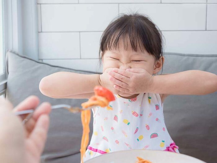 Cette fameuse phase peut se caractériser par une inspection minutieuse de chaque aliment, un tri dans l’assiette, des défenses posturales (détournement de la tête, grimace, fermeture de la bouche, refus visuel de regarder l’assiette…), une mastication des aliments à n’en plus finir, le fait de recracher ou de vomir les aliments ou purement et simplement un refus catégorique de manger. Cette période peut avoir pour conséquence un apport alimentaire insuffisant engendrant une ou des carences nutritionnelles et un retentissement sur la courbe staturo-pondérale mais aussi dans certains cas un surpoids. La solution : comprendre, accompagner et rassurer votre enfant et cela dès que possible ! Je vous donne quelques pistes à mettre en place aisément au quotidien…